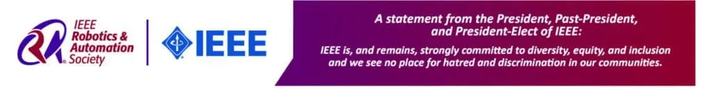 The IEEE Robotics and Automation Society is committed to advancing diversity in Robotics and Automation, and to promoting an inclusive and equitable culture that welcomes, engages, and rewards all who contribute to the field, without regard to ethnicity, religion, gender, disability, age, national origin, sexual orientation, gender identity, or gender expression.