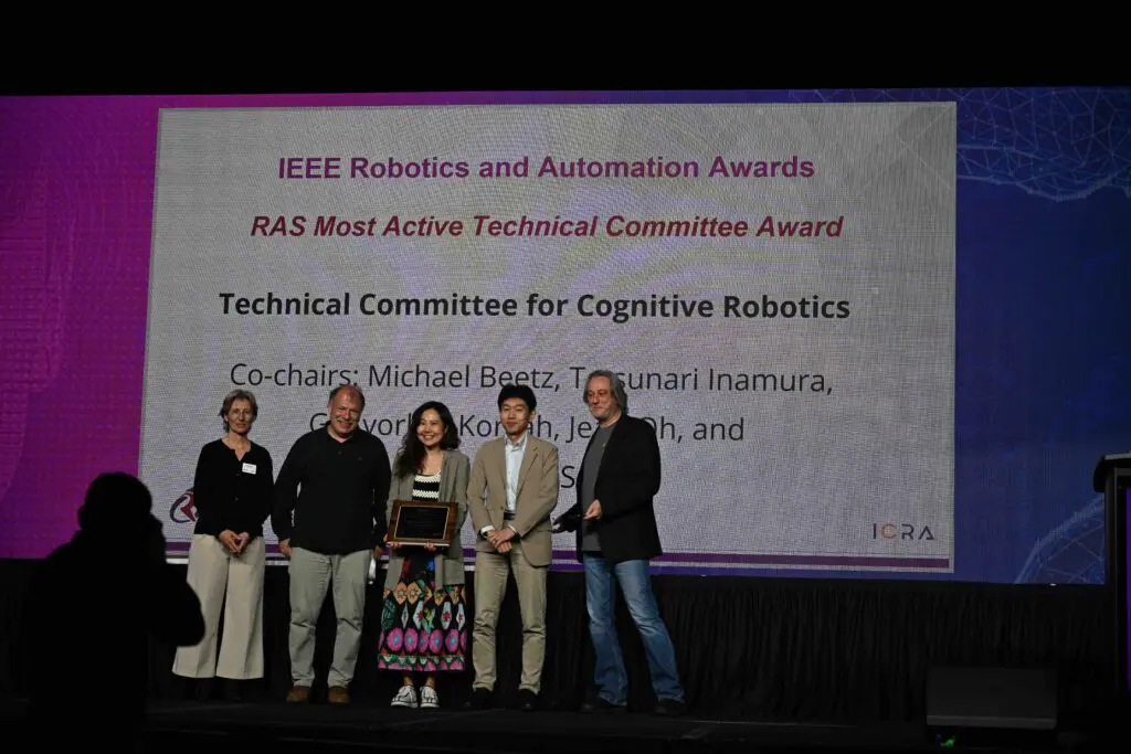 The award was received at the Awards Luncheon at ICRA 2025 in Atlanta, USA by some of the TC co-chairs: Micheal Beetz, Tetsunari Inamura, and Jean Oh!
